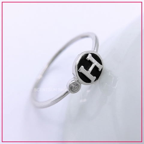 Nhẫn Bạc nữ Chữ H đầy cá tính, quyến rũ dành cho các nàng, chỉ có tại Trang sức Bạc Hàn Quốc Scentsun. Bên cạnh chữ H trên nền Epoxy đen huyền bí, được đính một viên đá kim cương nhân tạo làm điểm nhấn giúp chiếc nhẫn được sáng hơn, xinh hơn.